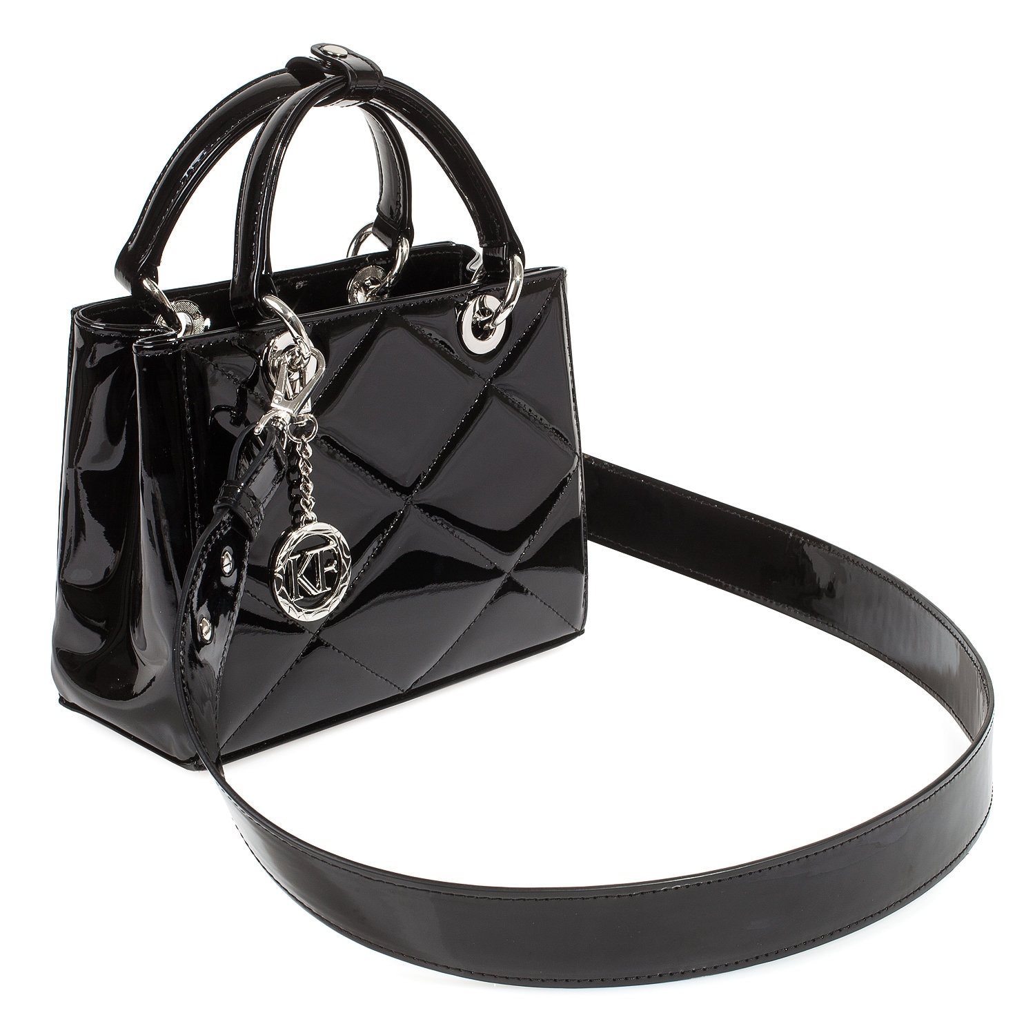 Leather Top Handle Bag, Black Patent Leather Handbag Top Handle, Women's Leather Bag KF-4486