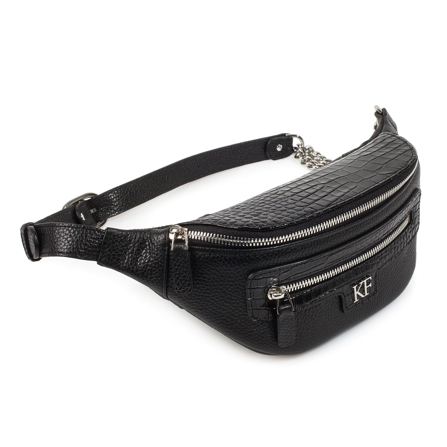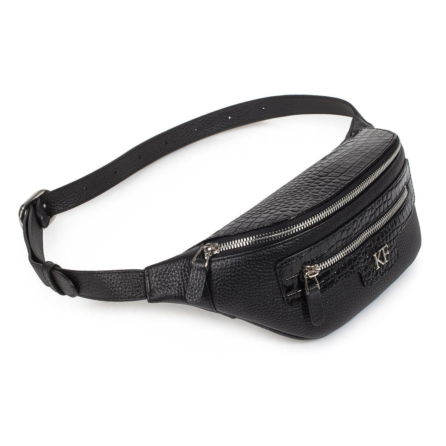 Leather women's Banana bag, Black Leather Banana bag, Women's Bananka bag, Leather belt Bananka bag KF-3758