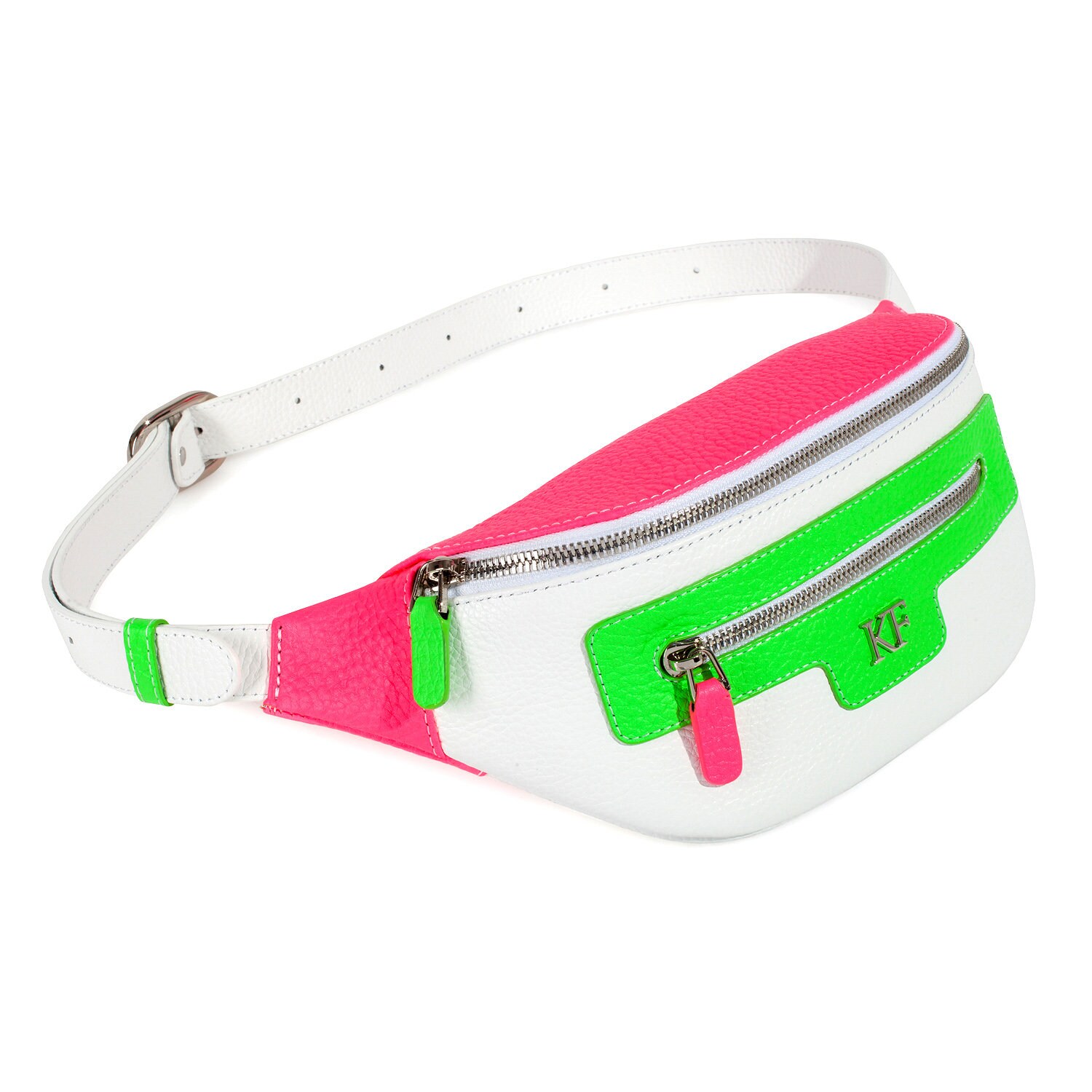 Leather women's Banana bag, White Leather Banana bag, Women's Bananka bag, Leather belt Bananka bag KF-3480