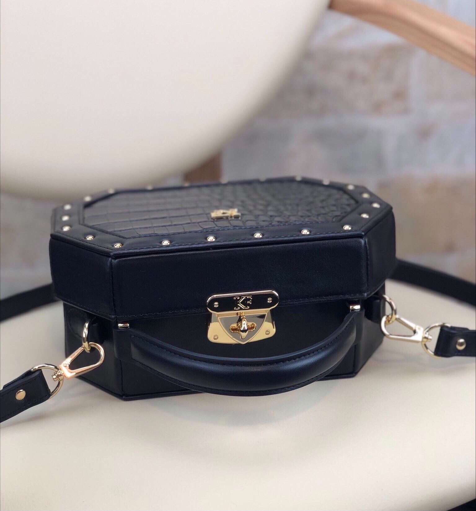 Leather Boxbag, Black Leather Box Bag, Women's Leather Boxbag, Leather bag KF-1763