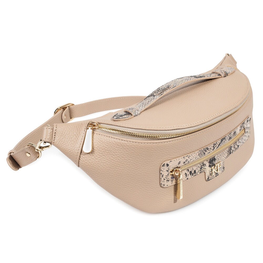 Beige genuine leather woman shoulder bag from ukrainian designer Katerina Fox. Women's laconic bag of leather will be necessary a stylish addition to many relevant images. Inside the bag one large compartment, one patch pocket and one zipper pocket, bag closes with a zipper. The handle length is adjustable.