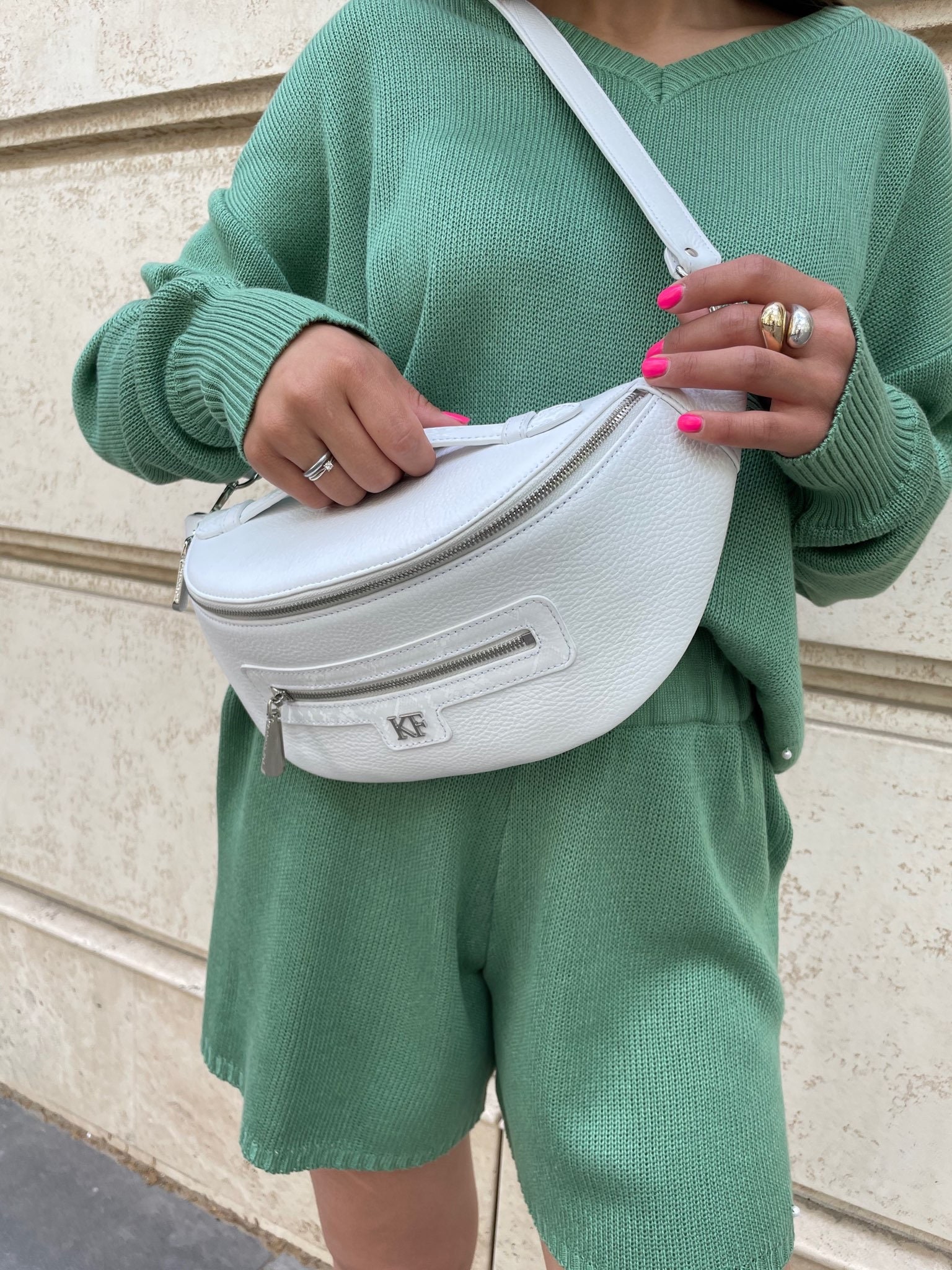 Light beige genuine leather woman shoulder bag from ukrainian designer Katerina Fox. Fashionable and elegant modern bag KF for bright girls and women. This bag is able to attract attention and highlight your exquisite taste. Inside the bag is one large compartment and a convenient zippered pocket for small items, closes the bag on the clasp. The bag is comfortable to wear on the shoulder or across the shoulder. If you are planning to buy excellent leather bag at an affordable price, this handbag is the right choice!