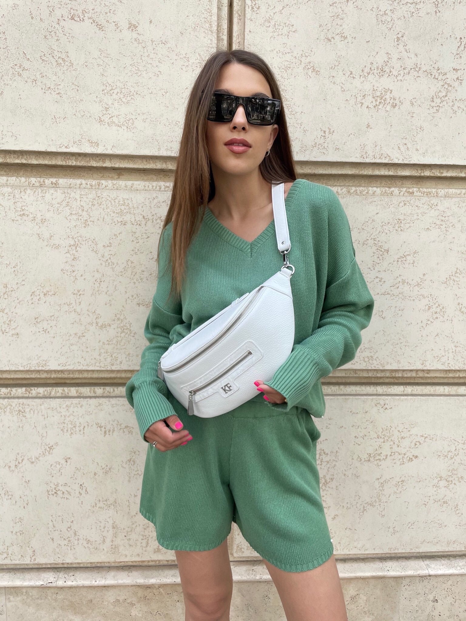 Light beige genuine leather woman shoulder bag from ukrainian designer Katerina Fox. Fashionable and elegant modern bag KF for bright girls and women. This bag is able to attract attention and highlight your exquisite taste. Inside the bag is one large compartment and a convenient zippered pocket for small items, closes the bag on the clasp. The bag is comfortable to wear on the shoulder or across the shoulder. If you are planning to buy excellent leather bag at an affordable price, this handbag is the right choice!