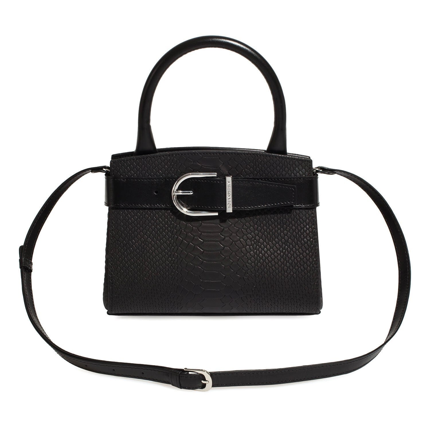 Women's leather bag made of genuine leather, hardware with galvanic coating and microfiber lining. The internal space of a bag is equipped with three compartments, one compartment and two side pockets, one with a zipper. §³loses with 3 magnet buttons. The bottom of the bag is protected with metal legs. There is a long handle that allows you to wear the bag on the shoulder. The kit also includes a storage bag.
