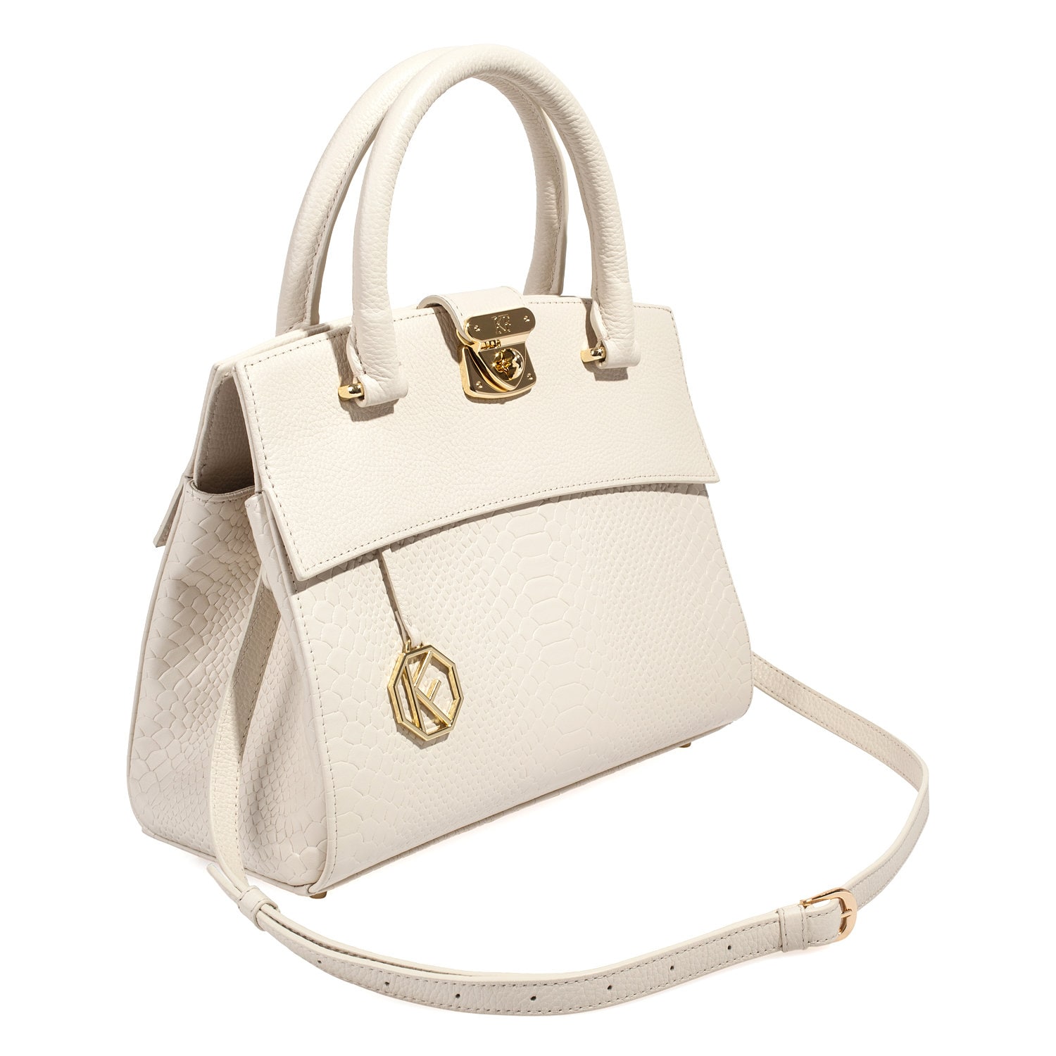Women's leather bag made of genuine leather, hardware with galvanic coating and microfiber lining. The internal space of a bag is equipped with three compartments, one compartment and two side pockets, one with a zipper. §³loses with 3 magnet buttons. The bottom of the bag is protected with metal legs. There is a long handle that allows you to wear the bag on the shoulder. The kit also includes a storage bag.