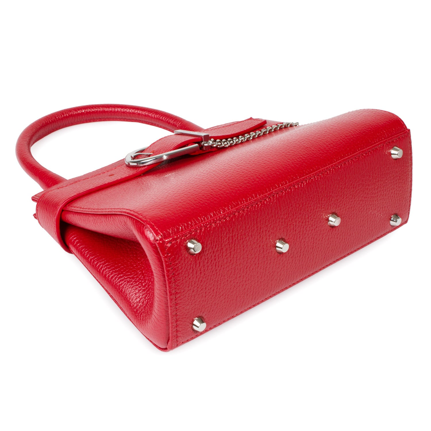Women's leather bag made of genuine leather, hardware with galvanic coating and microfiber lining. The internal space of a bag is equipped with three compartments, one compartment and two side pockets, one with a zipper. §³loses with 3 magnet buttons. The bottom of the bag is protected with metal legs. There is a long handle that allows you to wear the bag on the shoulder. The kit also includes a storage bag.
